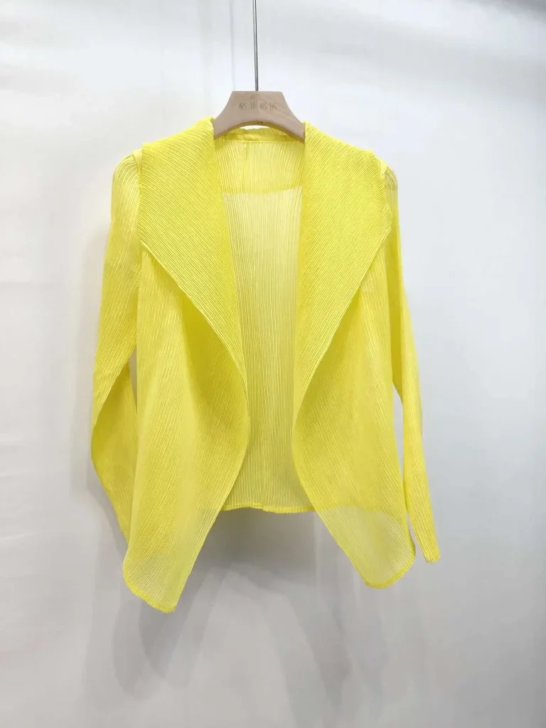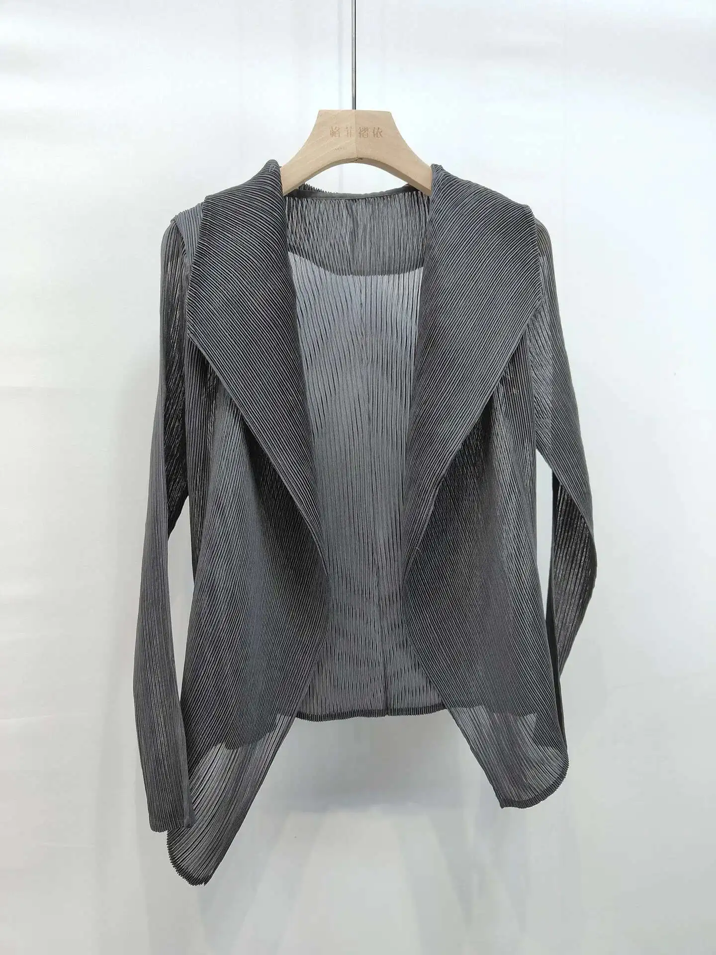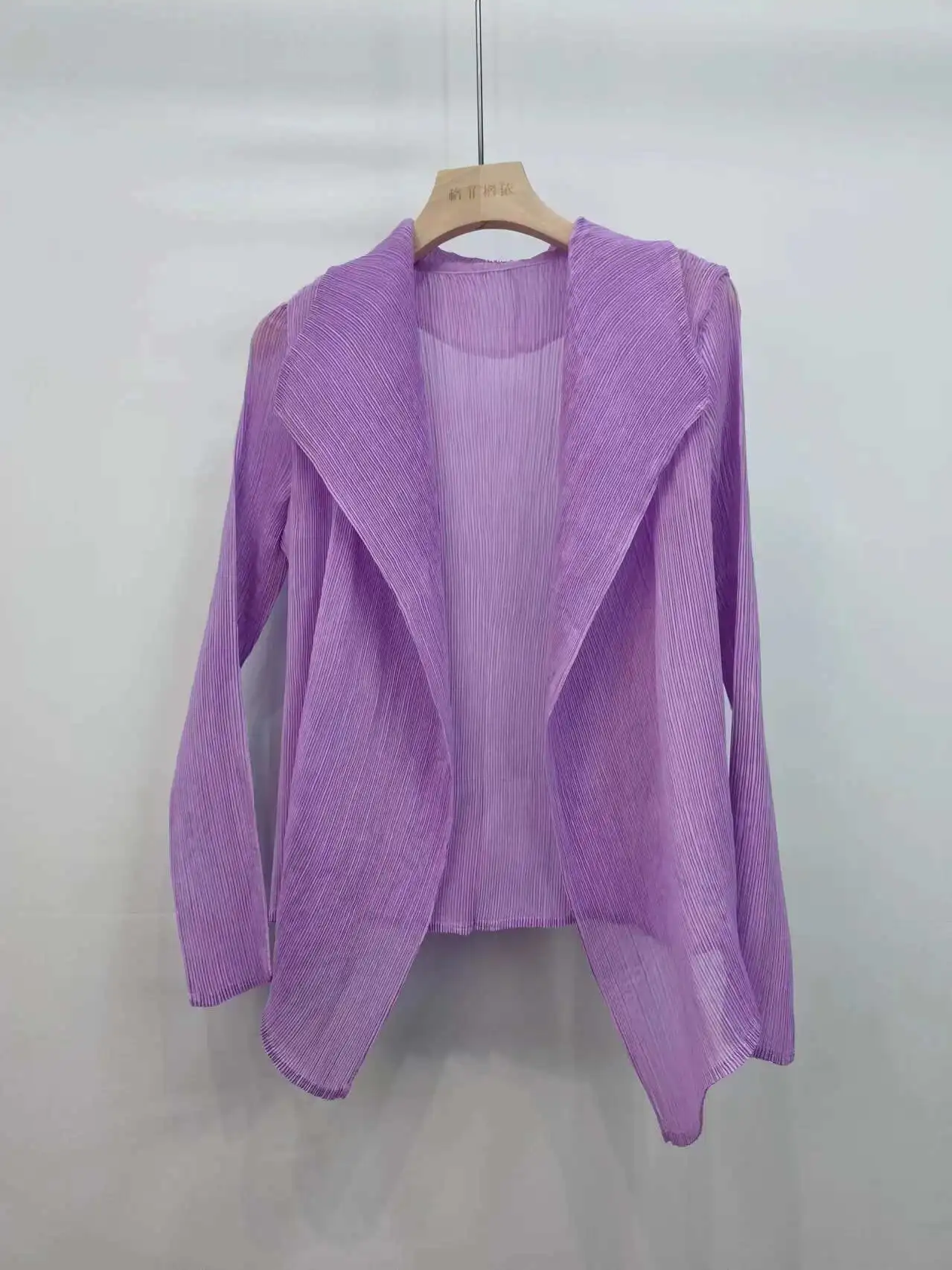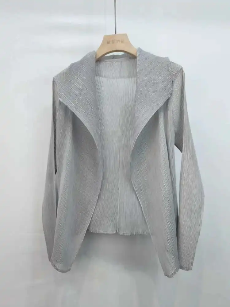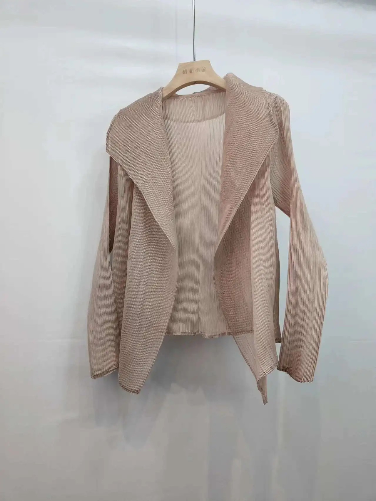 LANMREM Nihce Pleated Sunscreen Cardigan Coat For Women 2025 New Summer Fashion Lightweight Lapel Long Sleeve Clothes 2DB3155