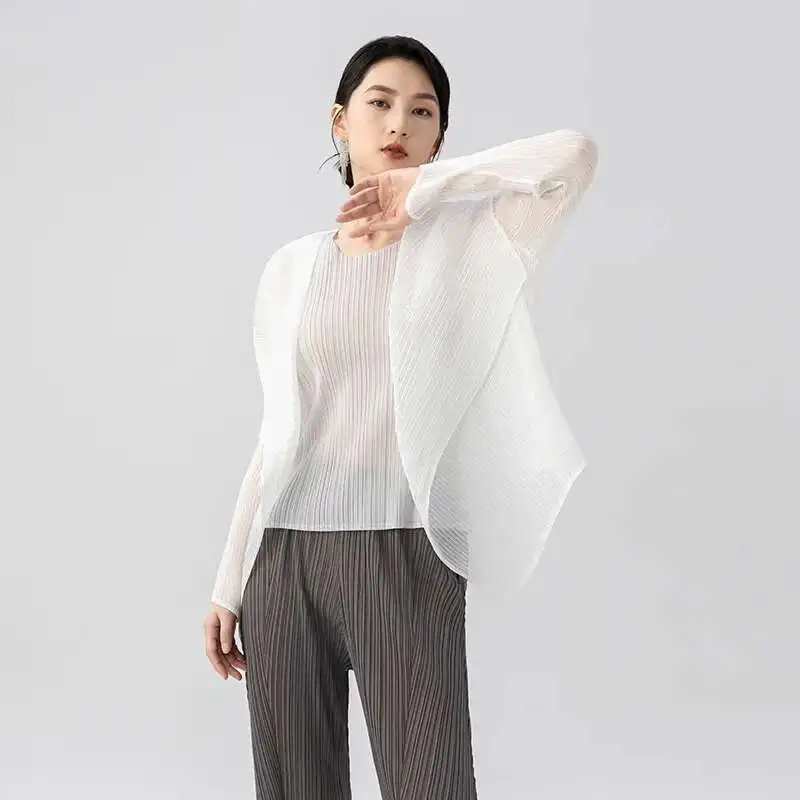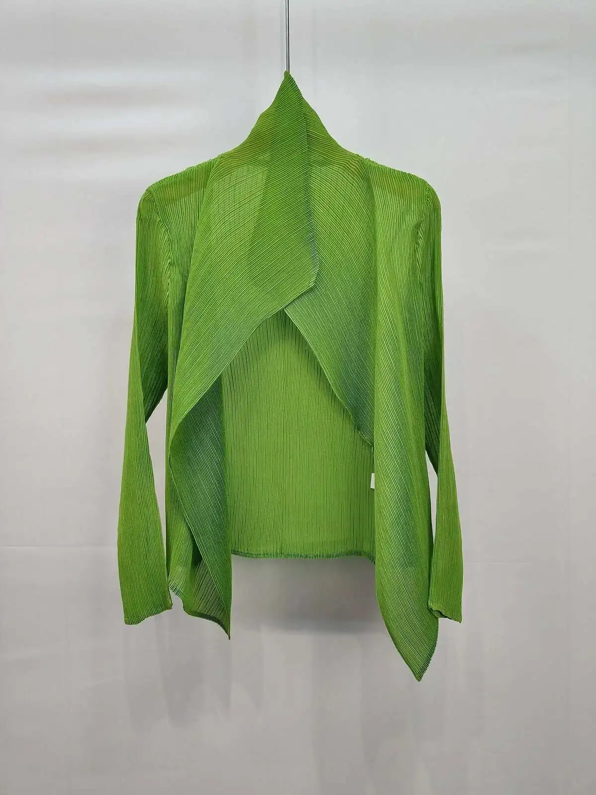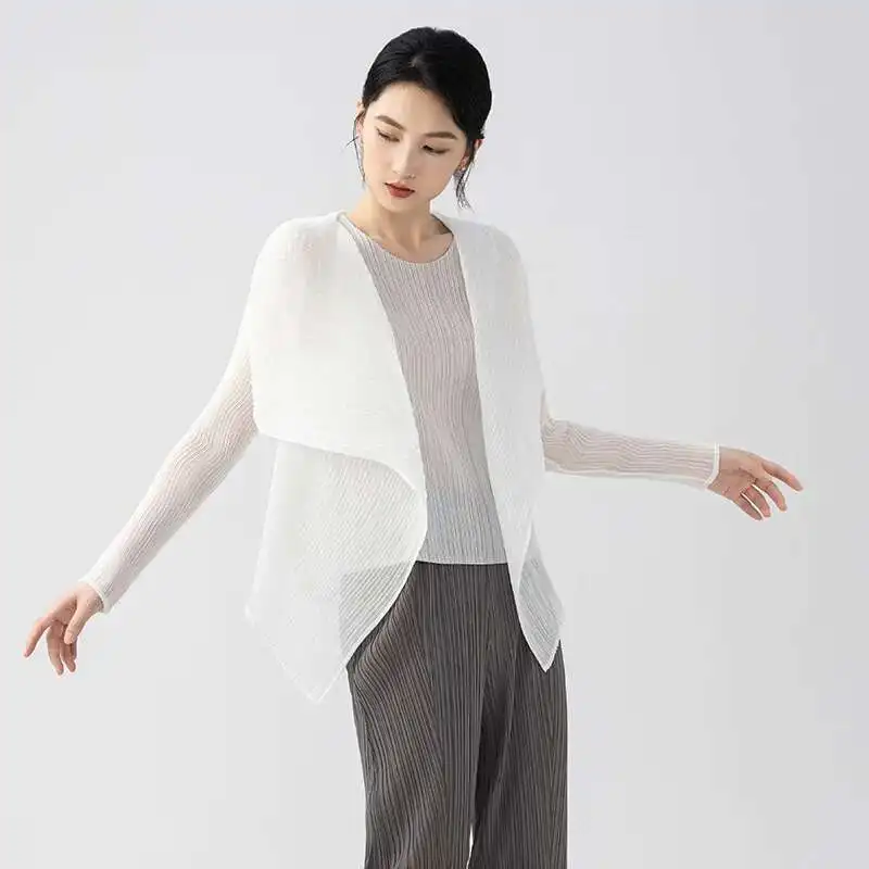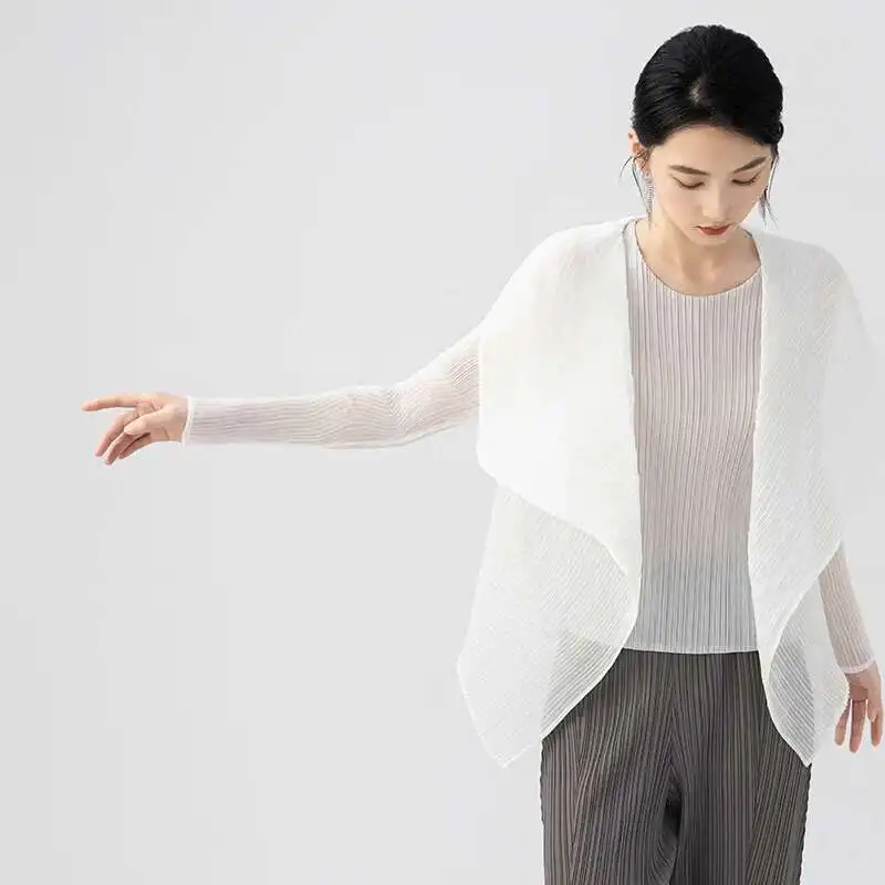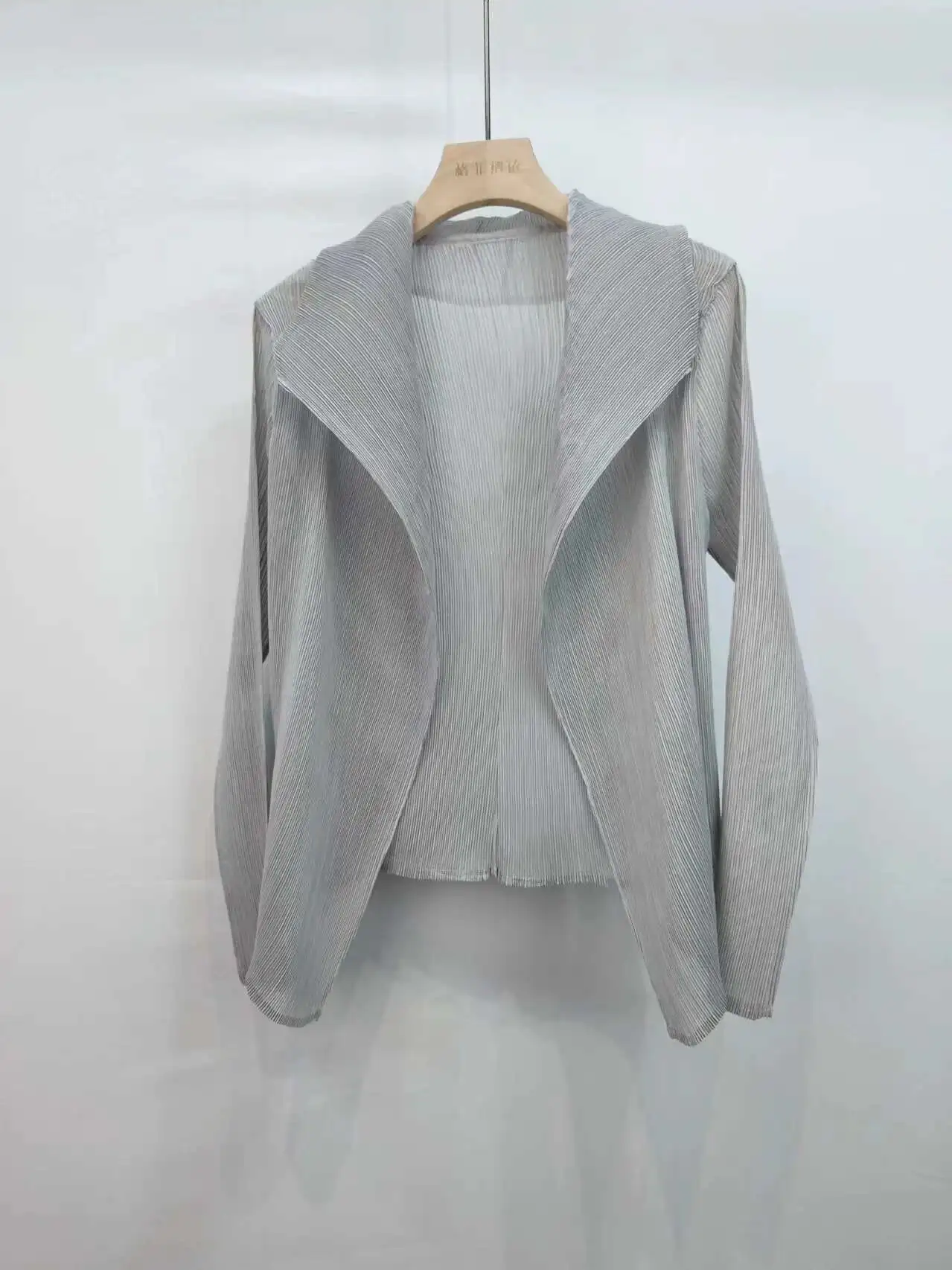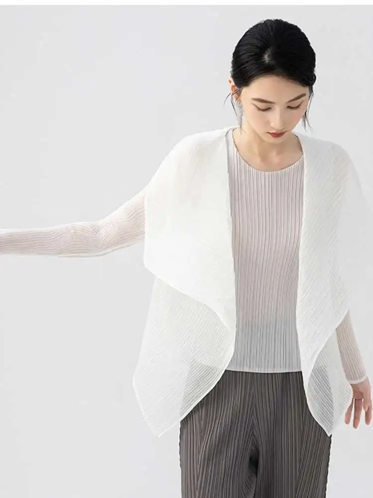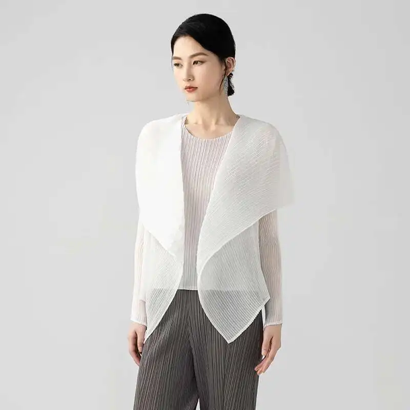 LANMREM Nihce Pleated Sunscreen Cardigan Coat For Women 2025 New Summer Fashion Lightweight Lapel Long Sleeve Clothes 2DB3155