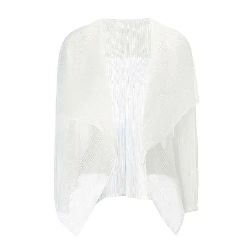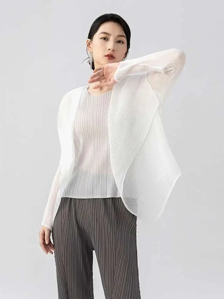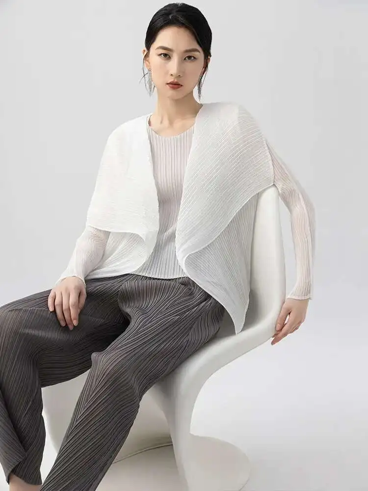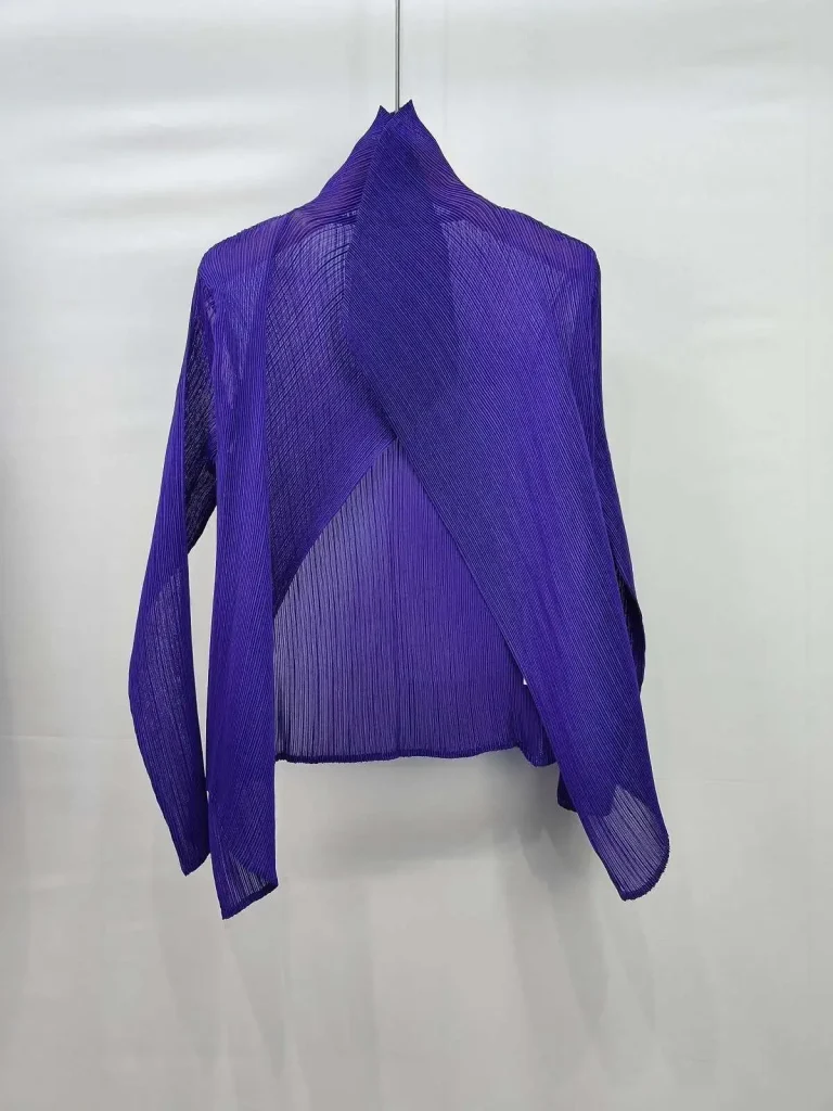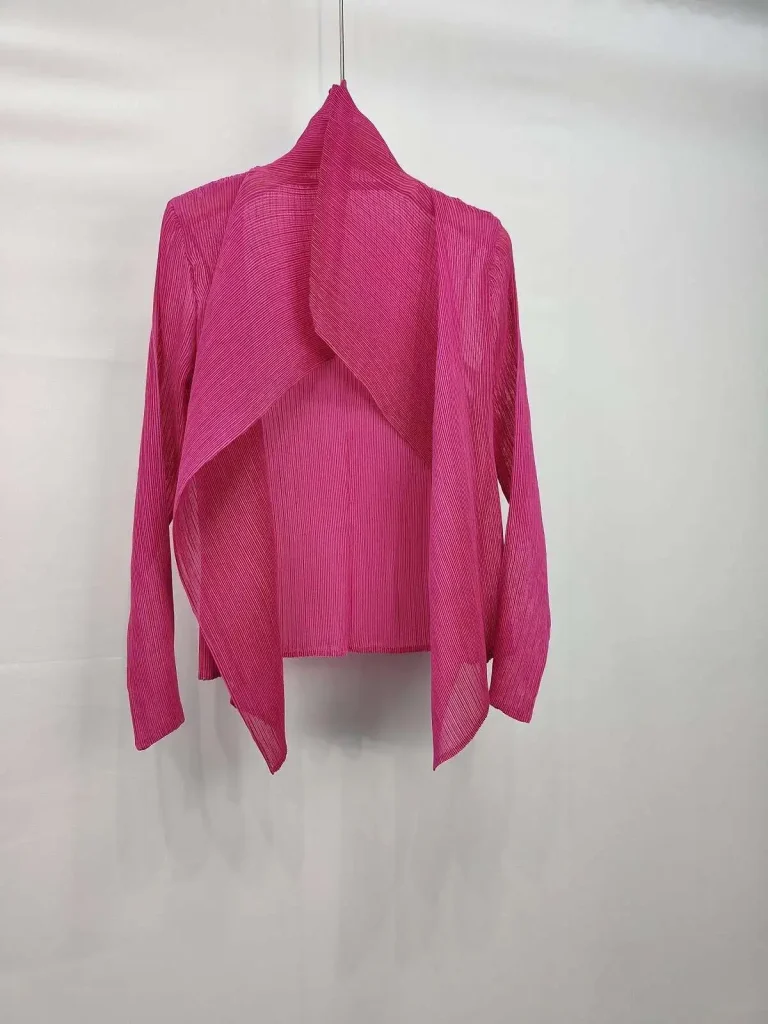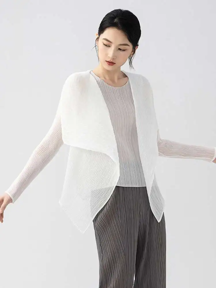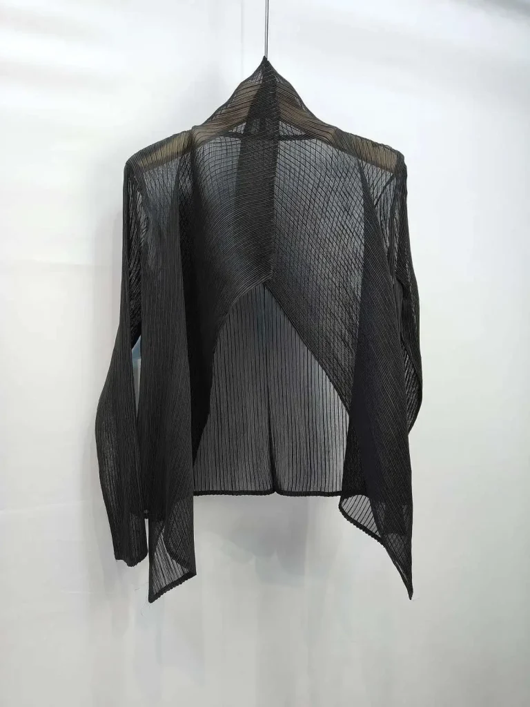 LANMREM Nihce Pleated Sunscreen Cardigan Coat For Women 2025 New Summer Fashion Lightweight Lapel Long Sleeve Clothes 2DB3155